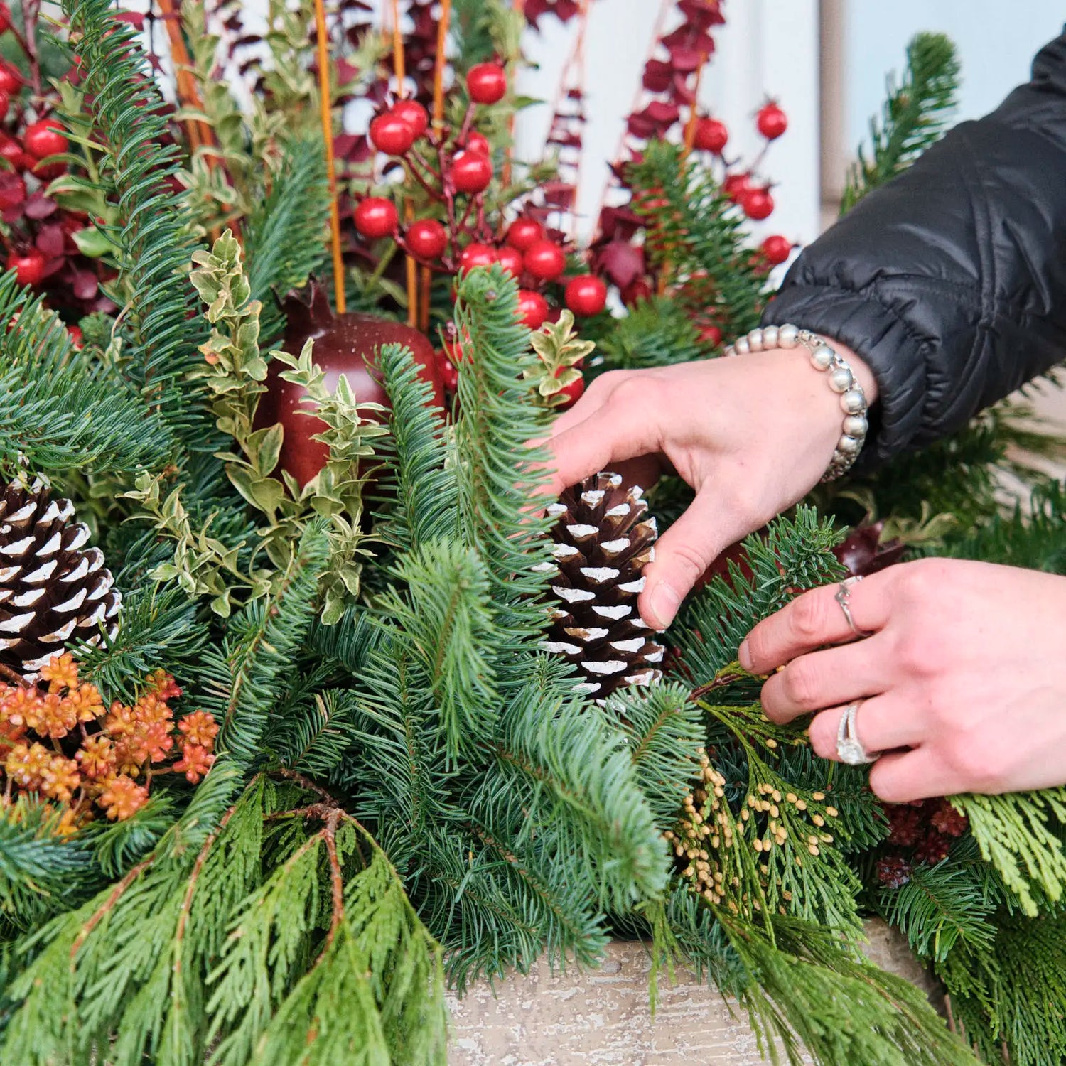 Our designer-curated winter planter kits arrive ready to assemble with fresh evergreens, floral accents, and simple installation instructions.